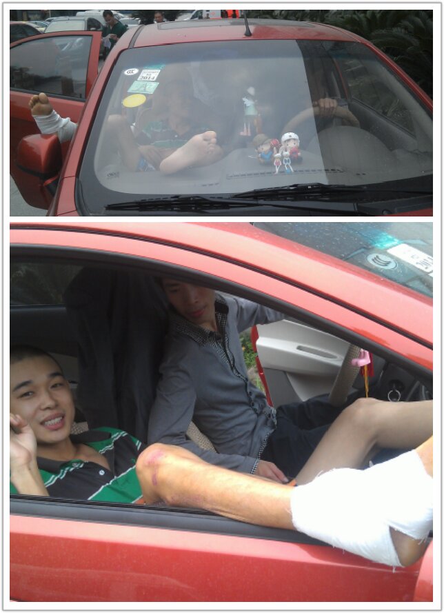 在8月21日一不小心被公交汽车给撞伤了~没想到当我被汽车下面拖出来的瞬间昏迷了!到医院一检查什么问题都没有,就只是弄掉了一块肉。。运气还算不错,不过虽然是弄掉了一块肉,还是在医院呆上了大半个月;做了一个植皮手术,每天都看着自己血淋淋的伤口。