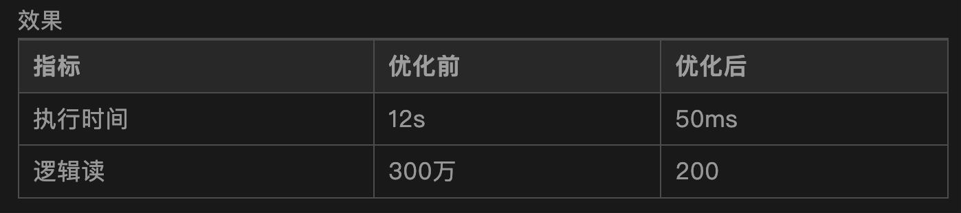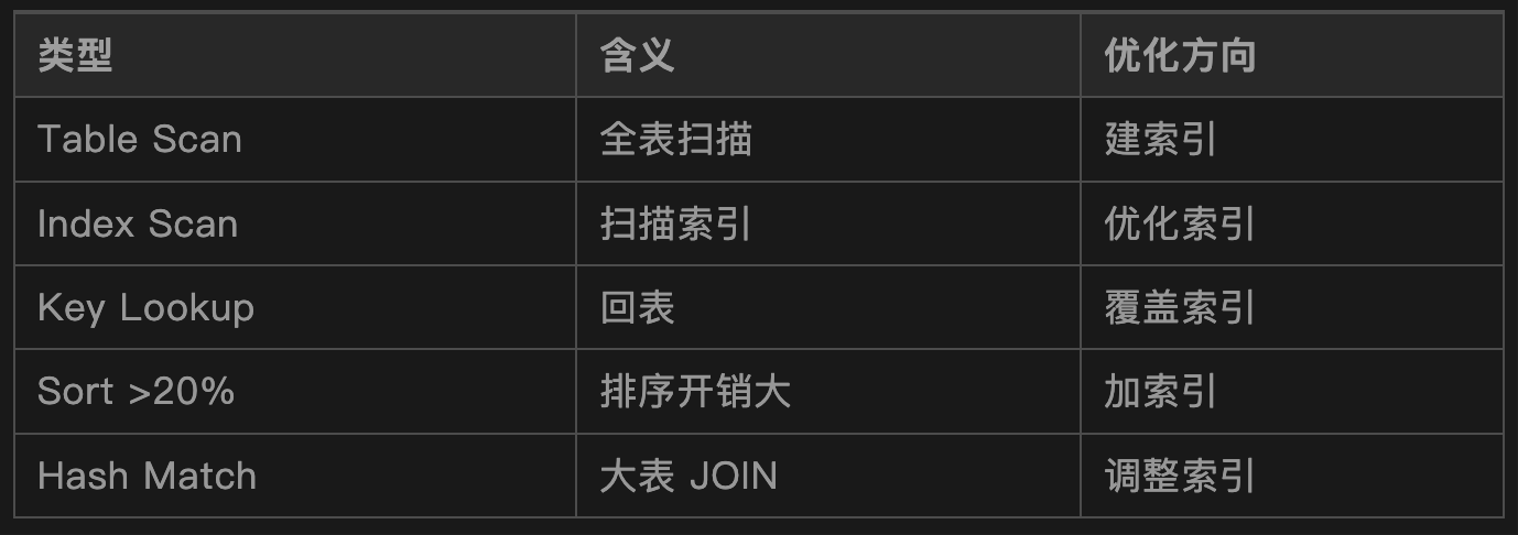 判断依据逻辑读高 = 大概率全表扫描索引缺失 / 索引失效
